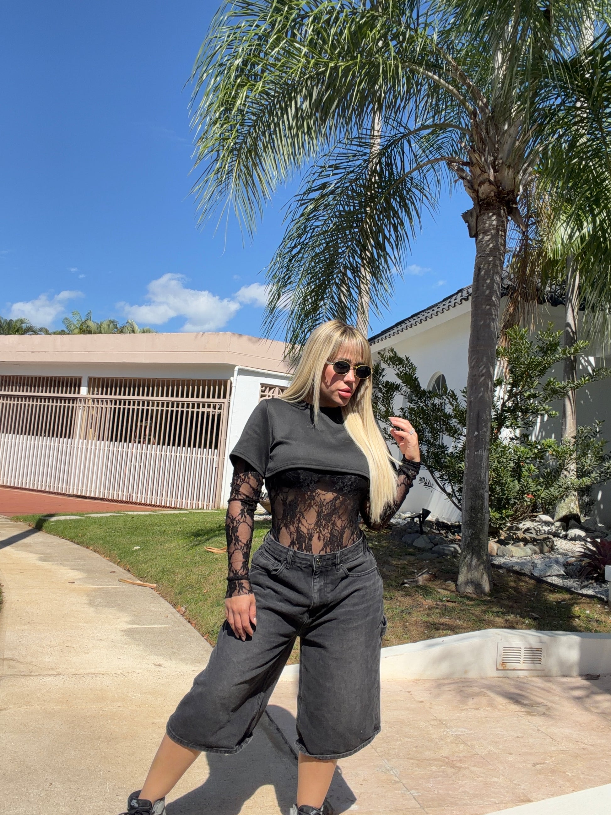 Dos piezas: crop top mega corto y bodysuit