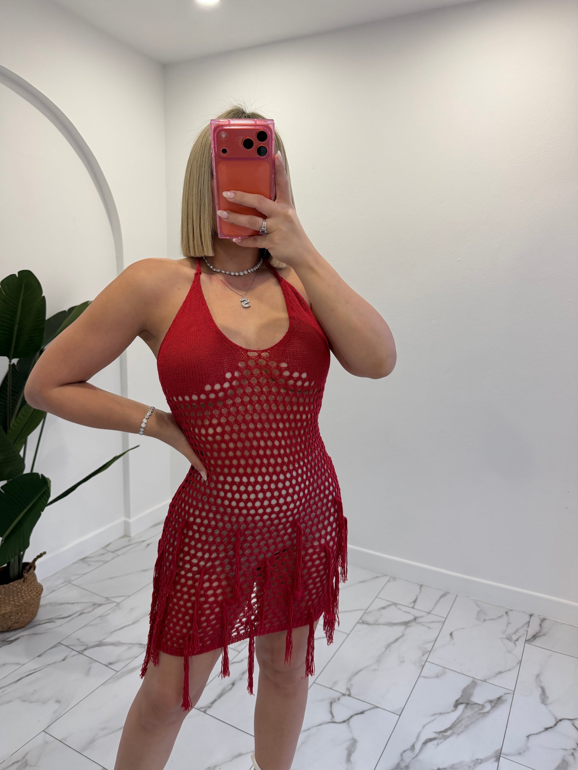 Crochet red flecos dress
