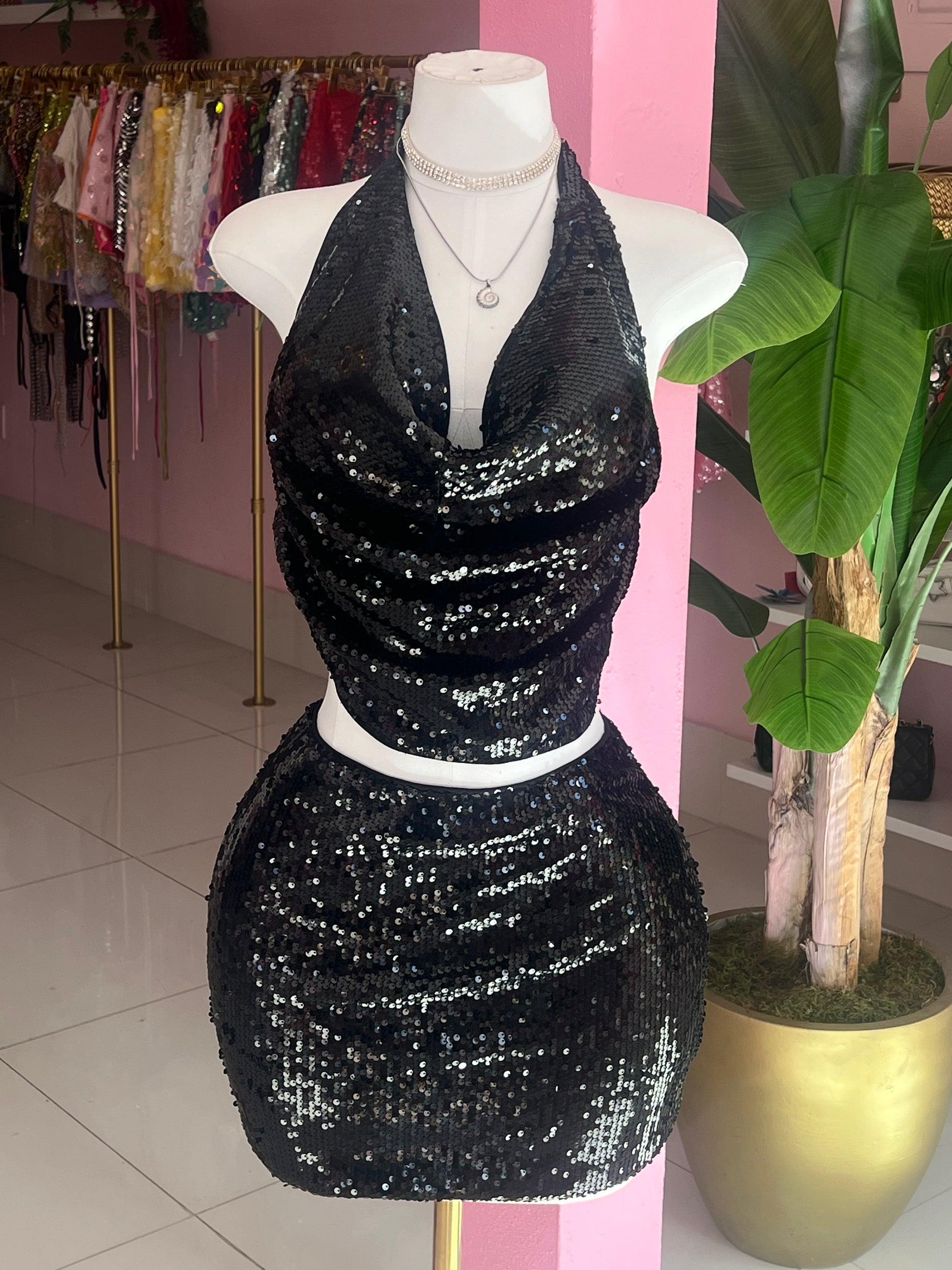 Sequins halter set